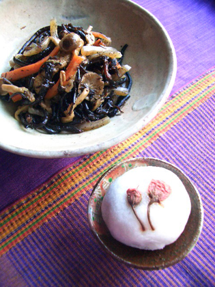 今回はひじきの煮物と、ちいさな可愛らしい桜のおまんじゅうがひとつ入っていた。