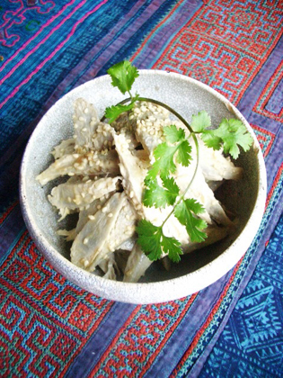 3)器に盛り、胡麻をふり あればパクチーを添える