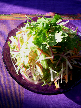 そしてこのサラダはまさにアジアン祭りのときによく登場し、何人分??というくらいの大きなボウルいっぱいの生野菜でも、もりもりと本当にたくさん食べられる。