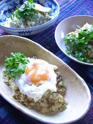 ちなみに写真は遅いランチに作ったパクチーたっぷりタイカレー風炒めご飯。