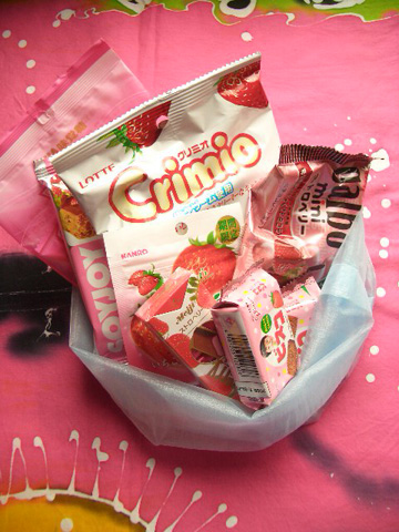 夜遅いのに苺とチョコパイとイチゴ味のチョコ。