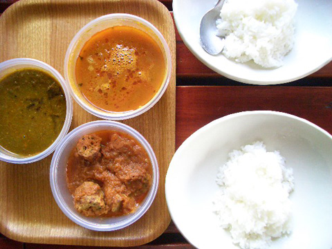 ヒロポンは昨日うちに来てくれたときに、お土産に林檎と花、そしてカレーを3種類持って来てくれた。ダル(豆)、サグチーズ(ほうれん草とチーズ)、そしてスパイスの効いたケバブ(肉料理)の入ったもの。