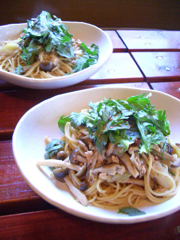 〜秋の和風パスタ 春菊&たっぷりきのこ〜