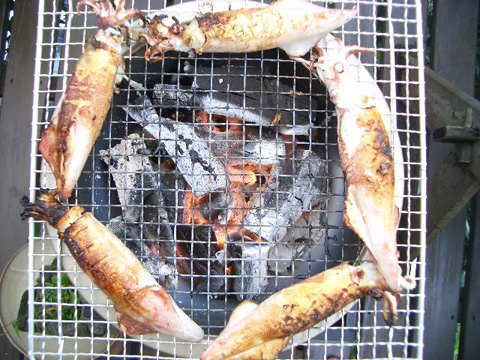 IKA ROCKさんが朝早くから市場で仕入れておいてくれた魚介や野菜たち。