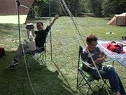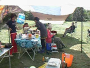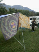 荷物を降ろしているうちに雨もやんでしまった。晴れ男moの成せる業かしら。とにかく見事な晴れっぷり♪でもみんな、どこかで晴れると信じていたし、場所も空いていると信じていた気がする。なんにせよこのお天気にも、場所が空いていたことにも感謝!