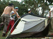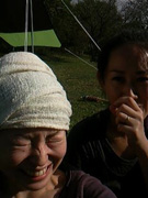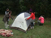 みんなで夕べの器を洗ったり、寝袋を干したりする。