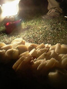 でも、途中ところどころ寝てしまって、記憶が断片的。あたしは参加できなかった8月のキャンプで、もう美味しすぎると大評判の噂の、ジマくん作【ジマポテト】なるものも、作っている異様な雰囲気に包まれたその姿をみたものの、あたしは食べずに眠っていた。でもね、今回のは美味しくなかったらしい。わはは〜〜〜。みんなに相当叩かれたみたい。そのオチも面白かったから、やっぱり食べたかったな〜。