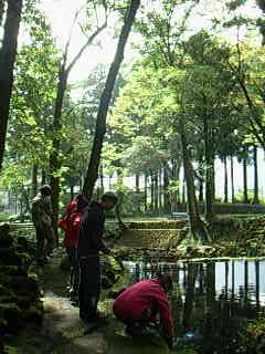 足元はびっしりと苔むしていてとても美しく、流れる川の音が本当に気持ちよい。