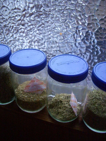 空っぽになった瓶はラベルをはがし奇麗に洗ってスパイス入れに。