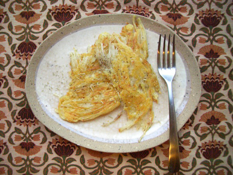 memo:千切りのじゃがいもをチーズと一緒にただ焼くだけ!の簡単レシピ。ハーブを切らしているときは、無しでも美味しい。じゃがいもは水にさらすとでんぷん質が抜けてまとまりにくくなるので、水にはさらさずに焼きます。チーズはなんでもよいので、あれば二種類くらい混ぜるのがおすすめ。仕上げのオイルはバターでもまた違った風味で美味しい。あたしは黒胡椒はたっぷり挽くのが好きですが、もちろんお好みで。^v^