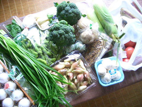 家に帰り食材たちをひろげ、一息。ぎゅうぎゅうで狭かったよね。お疲れさん。