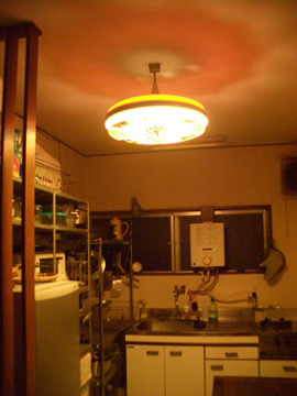 我が家の台所の照明は ここに越して間もない頃 画家である彼が描いてくれた。