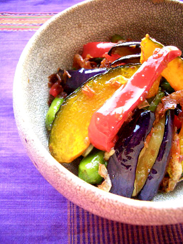 トロリと揚がった茄子、辛みのある獅子唐、程よい酸味のパプリカ、かぼちゃの甘み。