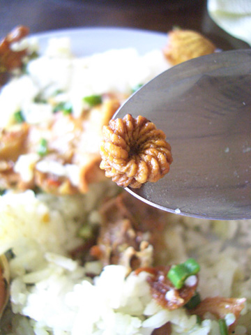 ↑ ドーナツみたいなこれは一体なんだろう?油で揚げてあるようで、カリッとしていました