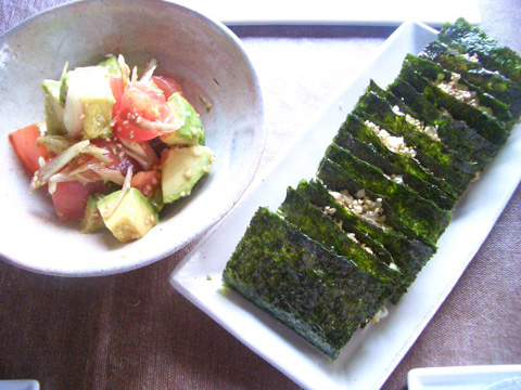 冷蔵庫にはアボカドと茗荷(みょうが)があったので
