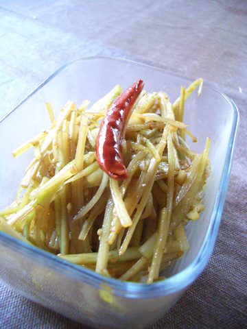 材 料:山うどの皮 適量→さっと酢水にさらし、水気を除いて千切り